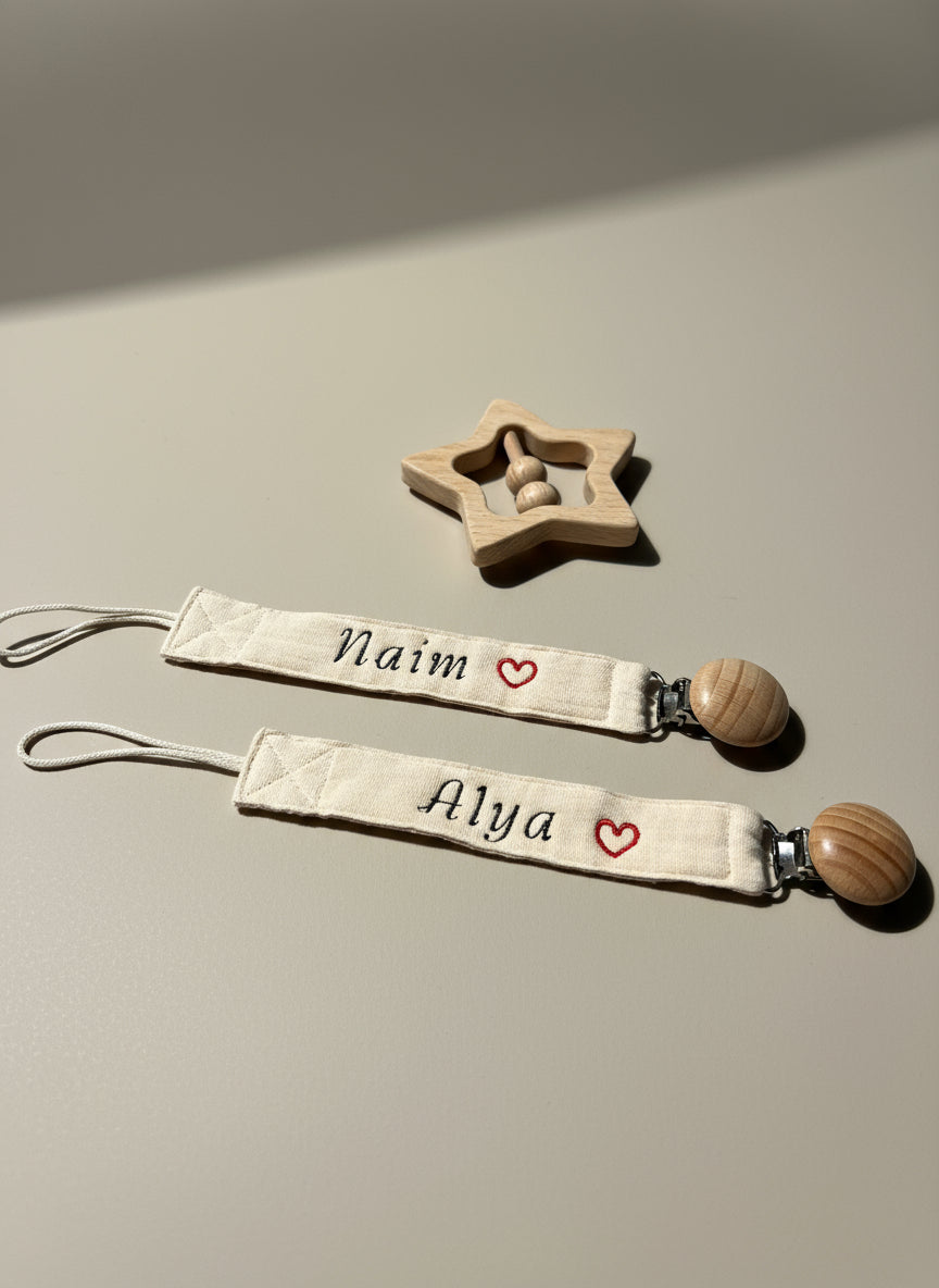 Onze speenkoorden zijn niet alleen superhandig om het speentje van je kleintje altijd binnen handbereik te houden, maar ook nog eens gepersonaliseerd met naam. Zo raakt het speentje niet meer kwijt en heb je een uniek accessoire dat past bij de stijl van jouw baby.